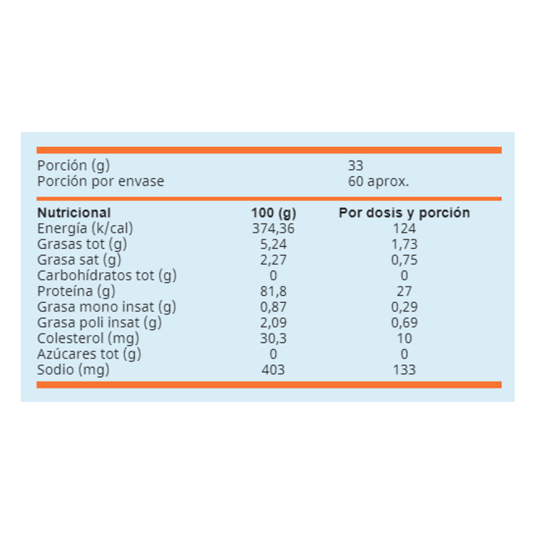 % Proteico: 27 gr. de proteína por porción